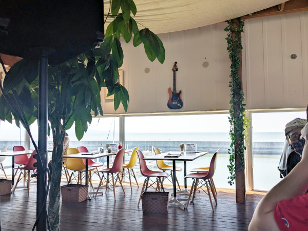 海沿いのカフェ「GENTOS」はプールがあるし、すぐ横には公園と道の駅「宇土マリーナおこしき館」もあるよ。